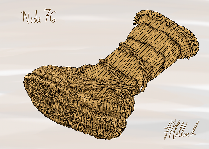 Figure 2D – More finalized image of the Node 76 illustration with detailed shading on the sole and toe weaving patterns: